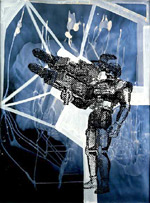 ![]() Sigmar Polke | I did get to the D'Offay gallery this trip, however, and managed to see the Sigmar Polke work in what was the opposite experience to the Tate Modern. We were, in fact, the only two visitors to the gallery... a strange and pleasant experience. I looked long and hard at the paintings, trying to figure out if I would like them more or less with or without the pixelated (or Benday Dotted) layers. I think, in the end, I go for With, because hey, that's what Mr Polke decided they should be like and who am I to argue? I like the paintings a lot, especially the one with what appears to be an armoured stormtrooper holding a massive missile launcher, and the one where Robocop seems to float on a post-Pop neo-expressionist ground. Naturally my predeliction for these paintings could be traced to my love of Warhol and Lichtenstein with their screen/benday treatments, and of abtract expressionists and indeed neo-expressionists. Which makes Polke a knowing manipulator of fashion. And that's fair enough I guess. As an aside, I wonder how long it takes Polke to paint the black layers - they do look hand painted and not screened close up - and/or whether he has minions to do all that for him. Like Jeff Koons, or Bridget Riley or Warhol or indeed any of those famous Renaissance painters... I don't expect Polke had any assistants with him in the late '60s to help assemble his sketchbooks, but it would be a great joke if it turned out he did. 'Ah!' they might say (in German, possibly), 'a photograph of a couple picnicking by their Volkswagen! This must go in the sketchbook!' And then Sigmar finding the page in the sketchbook later in the day and sniggering to himself whilst adding a few biro lines. The sketchbook pages collected in the smaller D'Offay gallery are terrific, off-the-cuff examples of how sketchbooks should be; all messing around with ideas and sticking in great images just because, hey! they are great images! There's also the amusement of seeing his approach to the high-school art teachers' favourite homework of sticking in a part of a photo and then extending from it in a drawing... I giggled. |