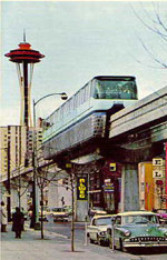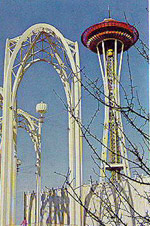 | I see people turning their backs on The Future every day, and no, they are not revivalists or ignorant saddoes. They might be website creators who find more inspiration in Dylan than the latest digital thing. They might be friends who once courted the cool modernism of Olde back then, but now prefer to sit at home strumming a guitar. The obvious source of discontent is not only what passes for Future Music today, but the naff appropriation of all that by everyone from the Rock establishment going to see Air in concert to every other tv ad featuring a 'twisted' or passé 'trip-hop' soundtrack. Music's Golden Age ended a few years before The Dome closed, but that particular disaster seems like a fitting final event. It should have looked and sounded like the 1962 Seattle State World's Fair, where 'fantasy prevailed in structures shaped like bubbles, stars, sunbursts, flowers, snowflakes, honeycombs and rippling ribbons..' - all to a, 'Electronique Outer Space' orchestral soundtrack courtesy of Attilio Mineo (Subliminal Sounds, SUBCD-4). Instead, it was rubbish. We missed our last chance to get The Future right, which is a shame. © Robin Tomens Read the next part of Robin's 'All The Time In The World' series here. |