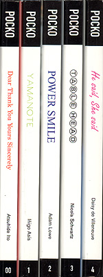 | Size matters. Small is beautiful. Especially when it comes to books. Look at those lovely 55 books of photography from Phaidon. Look at the classic incarnation of the Penguin classics. Look at the mythic Olympia Press travellers Companion Series. Look at Pocko Books. Pocko books is a new series of pocketable books, that, to quote the books themselves 'merge art and design within the fuzzy borders of contemporary culture.' Pocko reckons there's going to be 96 books in the series, published at a rate of 8 a year, which by my rudimentary math makes it a 12 year project. Which is some undertaking. It'll be interesting to see if the project runs the course, but whatever, from the way it's started it'll be a fascinating journey however long it lasts. The first batch of books are available now, and the first five come packed in a neat little black box. Book 1 (actually Pocko 00) 'Dear, Thank You, Yours Sincerely' is by Atshide Ito and is essentially a record of rejection. How utterly post-modern. It's a collection of letters of rejection from a host of galleries, art-competitions, colleges and assorted other art-related industries that documents three years of effort. My favourite is from the Mafuji Gallery which has the words thank you and sorry in bold. In these times of fluid employment situations, Ito's book carries a rare, quirky, poetic quality. Pocko 1 is by photographer Inigo Asis. 'Yamanote' is a telling collection of images snapped as crowded commuter trains on Tokyo's Circle Line open their doors, revealing salarymen and women, sardined and invariably stony faced. What's startling, though, is not the uniformity of the characters, but rather the disparate nature of all the individuals. Each one lost, trapped, happy or otherwise in his and her own personal universe. It's a fascinating little book, and there are endless stories to be told by these faces. Pocko 2 is Adam Lowe's presentation of Press photos of early '70s US Senators. 'Power Smile' curates these photos (in fact collected by two German teenagers) as a comment on the mediation of politics, but really I'd have preferred some sort of juxtaposition of era to give the project a sense of meaning. As it is, it's just a collection of photos of old guys we don't care about. Kind of fun to look at, but... Much finer is Pocko 3. 'Tablehead' by Nicola Schwartz is a fascinating macro-photographic record of Schwartz' global journeys, reflected in the heads of Table Football players. There are chubby faced baby players from San Francisco; simple, geometric wooden figures, pitted black by time and (ab)use from Marrakech; pouting prima-donnas from London; pitted and chipped souls like lost sculpture from ancient civilisations from Sardinia; and gruesomely, a decapitated player from Milan stands aside another, whose face has seemingly been scorched and disfigured with a gouged 'X', as if Charles Manson had been in town for a foozeball tournament. Essential for the soccer devotee looking for something that little bit different. |