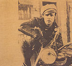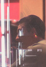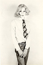 There's a great room in the Tate show that poses gun slinging Elvis' (flanked on one wall by Jimmy Cagney), opposite Marlon Brando. There it is: Elvis toting his pistols at Brando, a challenge of extreme Popism, and Brando gazing back, looking like he could give a damn. Of course in 2002 it's not about Elvis or Brando, not least because I'd bet a whole load of the people passing through this exhibit wouldn't know or much less care about who Elvis or Brando were, will see only faces and poses that have entered the abstract vocabulary of Pop. In 2002 it's not about Elvis or Brando, but is instead about the implicit sexuality of the poses, of the very Image of the images. How fitting then that the other piece in the room is 'Kiss', a close up of meshing lips and tongues. Here's what it all boils down to then: Sex. Of course it's also about colour, especially in the coloured Elvis, where the play of the blue ground against the purple of the jeans is just electric. But then again that might be just me and might instead say more about my sad life than anything else... So it might be about colour, but mainly of course it's about Sex. But if it is, then it's about Sex as some abstract, projected notion. There's that distance again, separating Warhol from the sexuality, from the physicality of the act. It's clear in those Elvis and Brando paintings, and it's clear in the 'Blow Job' film that shows elsewhere in the exhibition. 'Blow Job' is 41 minutes of Gerard Malanga's head rolling in strange rhythm, as he enjoys, we assume, some oral relief. Of course we have no idea if this really is the case. We can only trust the title, we can only place faith in the moving image... and project an understanding by way of a what experience we might, or might not have. In other words we bring our own context to the film, and that context changes by our own experience. Watching the film, what becomes most interesting is not the image on the screen, but the comments from the people passing through the exhibition; the questions posited by children and the answers from parents. So that we have answers to the question 'what's he doing?' ranging from the film being an exploration of light and shadow through to a rushed 'nothing, let's move on'. Best of all is a child, passing by, expounding 'look Mummy, he's singing.' Which he could be. And in fact all those responses seem valid, because the film IS about nothing, and it IS about light and shadow, and maybe it's also about singing too. And actually the suggestion that it's about nothing seems closest to the truth, because if it's about Sex, if it is about a blow job, then it's about how boring Sex ultimately is. It's about how Sex might be addictive, fascinating and pleasurable, sure, but it's also boring and unproductive. In 'Blow Job' Gerard looks increasingly bored, increasingly uncomfortable with his position in front of the camera, as if what initially sounded like a good laugh is no longer amusing. The joke isn't funny anymore; the pleasure in being the subject of voyeurism becomes discomfort; becomes merely intrusive after a while. 'Blow Job' could also be about torment. Malanga's writhing might easily be the contortions of a man raked with religious torment... So 'Blow Job' as religious film? Sure. Why not. |