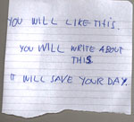 | A hastily scribbled scrap of paper says, simply: 'you will like this. You will write about this. It will save your day.' The note wraps around a seven inch single on Break