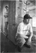 Somewhere in the early to mid 90's the garage rock scene began to flourish here, as in other parts of the U. S.. I'm guessing this music must have been a lot more fun to make than to actually listen to, as even a cursory review of the plethora of singles from the period will attest. Austin always seems to be a little behind the times in regards to larger trends in the indie scene. So currently there is an abundance of so called post and space rock, which receives regular raves from this town's cultural mafia the Austin Chronicle. The Chronicle is a somewhat insular and incestuous bunch with a propensity for expressions like "world class musician" when writing about people like Eric Johnson and Jimmie Vaughn. To their credit, I suppose, they seem doggedly loyal to those whom they take into their fold. With all that said here are a few Austin bands, which to my ears are doing interesting things. Some of these bands I've heard recordings of, others I've only heard live. Knife in theWater are the most well known of the bands I'll mention. They have a sort of Texas Gothic feel, in the literary sense of that word and without becoming as cartoonish as say, Nick Cave. Their songs deal in dark themes (drunkenness, adultery, murder etc.) usually taken at a codeine pace with the accompaniment of pedal steel. In the right mood it's hypnotic but if you're not feeling patient enough to let the music unfold at its own pace you might find your mind wandering or becoming impatient. Their best stuff has the appeal of a well-written short story. Somewhat similar in feel but with a touch more of a band like Yo La Tengo are the Hidden Persuaders. The Soft Set has played several shows with the Hidden Persuaders all of which have been quite enjoyable. The addition of an electric piano player rounds out their sound in a unique fashion. |