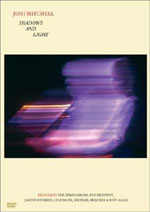 Joni Mitchell music. For this is Joni Mitchell's moment of transition, from folk troubadour to jazz-rock singer, via some 70s pop and soft-jazz with the LA Express. This is the tour of the three greatest LPs she made: Hissing of Summer Lawns, Hejira and Mingus, before the slow decline into AOR and [cigarette] smoked-out retirement. This is a real melting pot of influences, proof that who you play with makes all the difference, proof that the confessional Canadian chanteuse had more to say about life than endless tales of broken hearts and angst-full relationships. Nothing has mapped out the feeling of relentless travel and touring better than Hejira; nothing has come close to the edgy meeting that Mingus records - for me a glorious failure, but one worth every moment of the awkwardness and musical hybridity it contains. Mingus and Mitchell are both far better elsewhere, on their own, but together something sparks and crackles in the air. Goodness knows why Mingus was the end of something rather than a beginning, although Mitchell has spoken elsewhere of these albums not seeling or being critically acclaimed in America, her home market, as they were in Europe. Whataver the reason, Joni Mitchell would never be as experimental and open again. Anyway, this film, finally released on DVD by SHOUT Factory in the States is Joni Mitchell's own treatment of the tour video footage (plus, for those interested, a bonus set of tour photographs). Not only do we get to see the guys in the band soloing and intereacting, we also get Mitchell's own arty video inserts and overlays: wolves howl against the moon, Mitchell -the black crow, - skates on ice, and so on. I'd remembered these, from when this was originally aired on television, as intrusive and clumsy, and some recent reviewers have said the same thing, but this time round I didn't find them invasive at all. After all, how long can one tolerate Pastorius' white flares and Metheney's hippy hairband, or watch close-up of musicians' fingers? And, although it's a long time ago, Mitchell's dress sense sn't entirely tasteful or her stage presence altogether spellbinding. So the mix of stage shots and video digression hits just the right balance for this viewer, and helps overcome the slight feeling of the concert being a period piece. Shadows and Light was also released as a live double album. It's one of those albums that over the years came and went from my collection, before finally taking root five or six years ago, when I finally learnt to love and live with the solos and lengthier/looser versions of songs [I still prefer Hejira though]. It's even better to be able to watch the concert now, and see this intelligent, vibrant, and quietly experimental music, being made and played. © 2003Rupert Loydell |