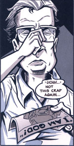 and an exceptionally grand romp. Now it seems to me that there’s a growing sense of comics being increasingly fashionable again. Browsing the displays of the London museums certainly suggests as much, as there seem to be growing collections of comics and graphic novels taking up space beside books on painters, photographers, architects and so on. One of the finer titles prominently on display at the moment is the fifth issue of Kramer’s Ergot (Gingko Press). It’s a hefty compilation of fully formed strips, reproduced sketchbook pages (check out Gary Panter’s 30 years of sketchbooks in 30 pages) and other intriguing and adventurous illustrations. And whilst it’s unfair to zero in on individual contributions in what is a remarkably varied and always excellent collection, I can’t help but particularly recommend Chris Ware’s typically architectural and melancholic offering, and David Heatley’s epic strip that tells the tale of his sexual history. Be prepared for 320 pages of endlessly entertaining and inspirational art. I’m already eager for issue six. Meanwhile from Top Shelf there’s been another string of excellent titles, not least of which are Rich Koslowski’s The King and Aaron Renier’s Sprial Bound. Koslwoski’s book is a fabulous Pop adventure/mystery that uses a former tabloid journalist’s exposé of an Elvis impersonator to explore themes of faith, self-reflection, and the bonds of mutual need that bind all cultural media together. Oh, and it’s funny as hell too. Spiral Bound is funny too, but in an altogether more innocent manner. Like Wimbledon Green, it’s an addictively grand romp, filled with impossibly exciting underground tramways, a hidden underwater monster, a ceramic submarine, a fearless bird photographer, an authority challenging rabbit and a young elephant of great insecurity but rare nobility. And that’s just scratching the surface. A marvellously engaging and warm tale that explores themes of friendship and loyalty, this is the kind of book that whilst undeniably aimed at kids is no less enjoyable for adults too. Comes complete with raving recommendations from the likes of Lemony Snicket, Tony Millionaire and Craig Thomspson. So what are you waiting for? And finally, in the self-publishing stakes, this issue’s prize of most entertaining and artfully assembled artefact goes to Brighton based illustrator Alex Bec with his Everybody’s Talking About… All the elements you could ever want are peresnt. Sticker? Check. Badge? Check. Hand stitched booklet of fine ink drawings illustrating snippets of overheard conversations? Check. Hand stamped, individually numbered brown paper bag to stuff it all in? Why check, of course. On sale in selct Brighton and London outlets, apparently, or email alex_bec@hotmail.com for details. © 2006 Alistair Fitchett |